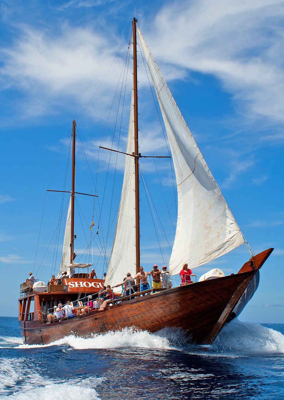 Experience a unique whale and dolphin watching adventure on this elegant teakwood schooner. The SHOGUN meets all international standards for responsible marine wildlife viewing, proudly flying the Blue Boat flag for eco-friendly excursions. Shogun cruise along Tenerife's stunning coast to the dramatic Los Gigantes cliffs.